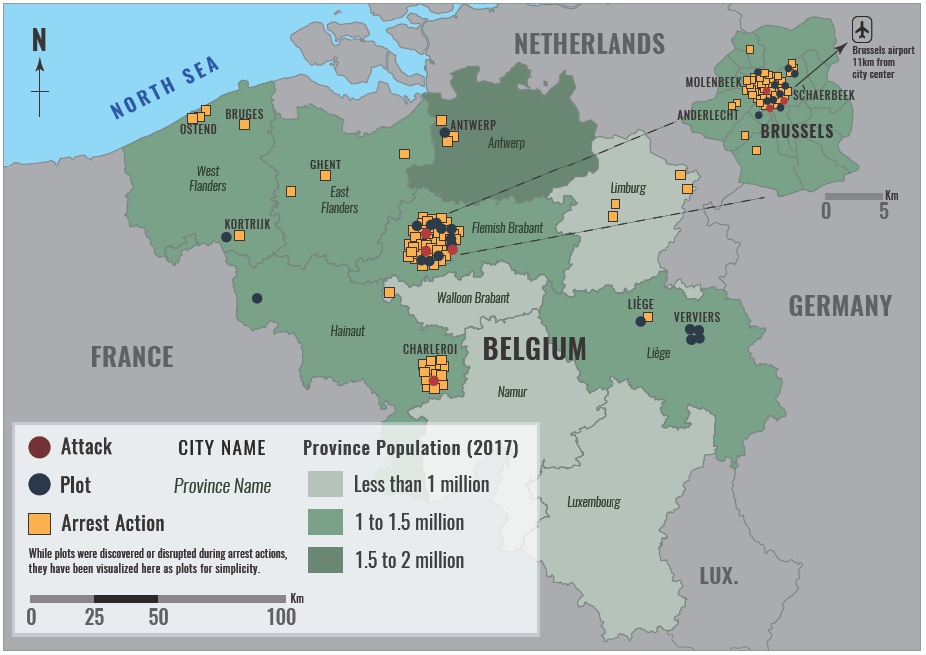 Map 1: Islamic State-Linked and -Inspired Attacks, Plots, and Arrest Actions in Belgium